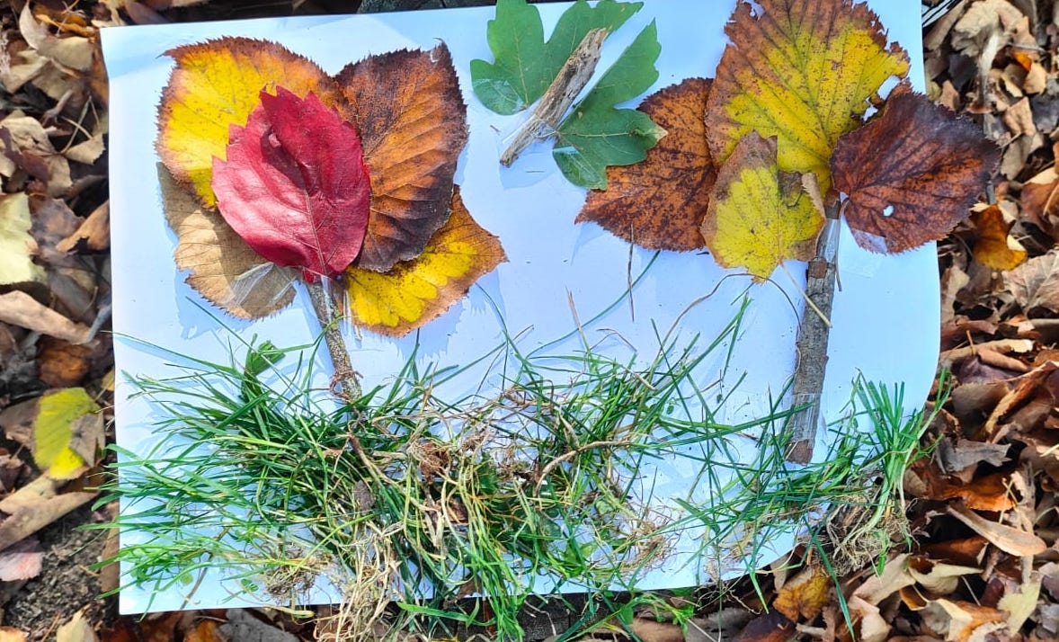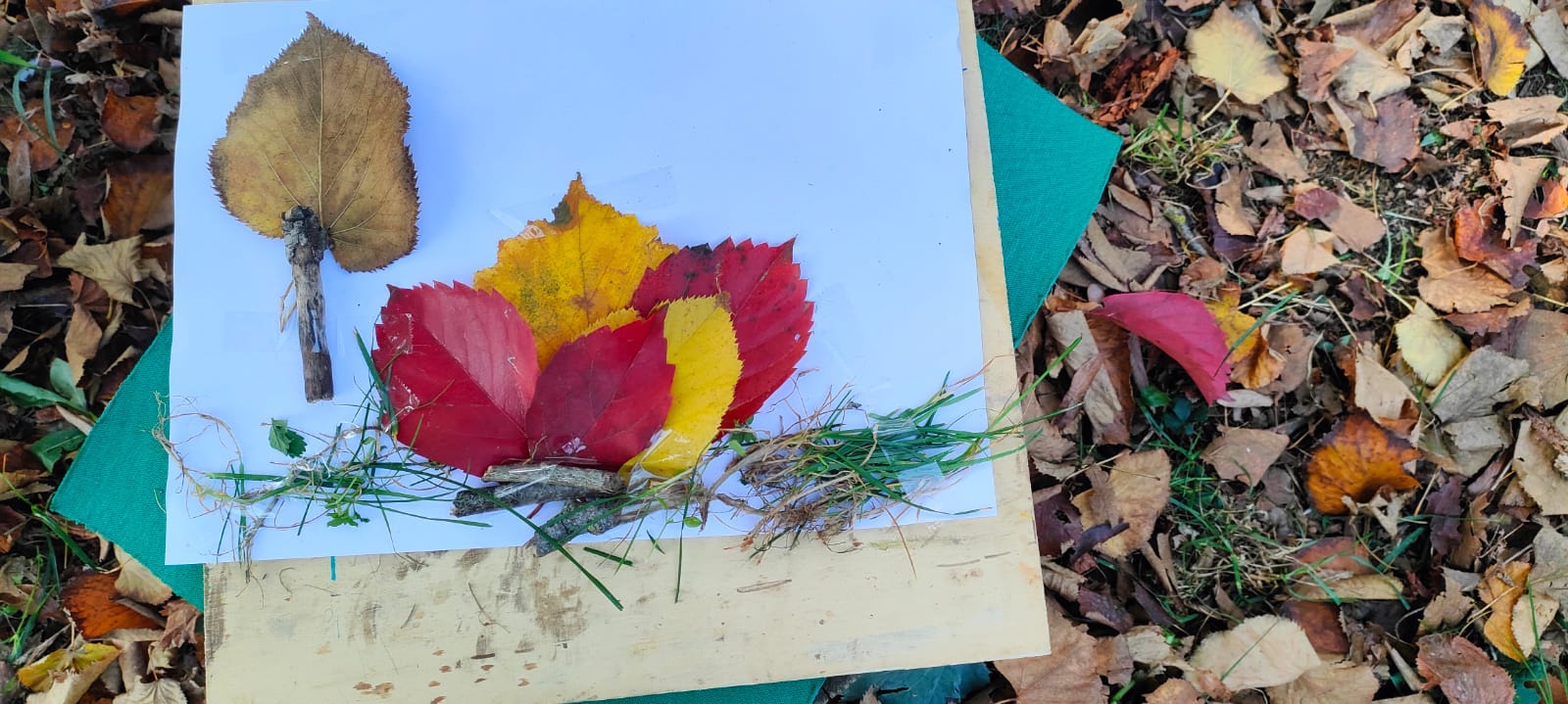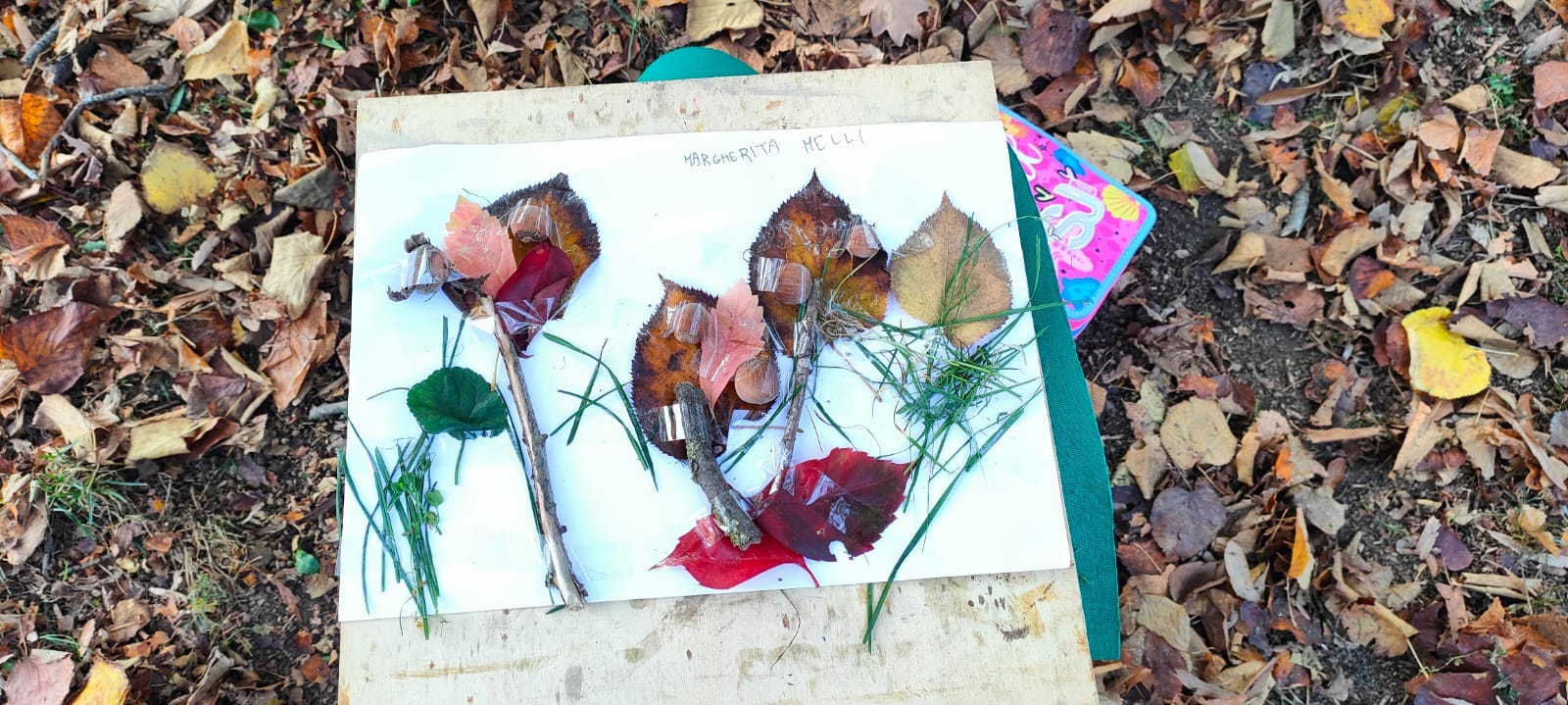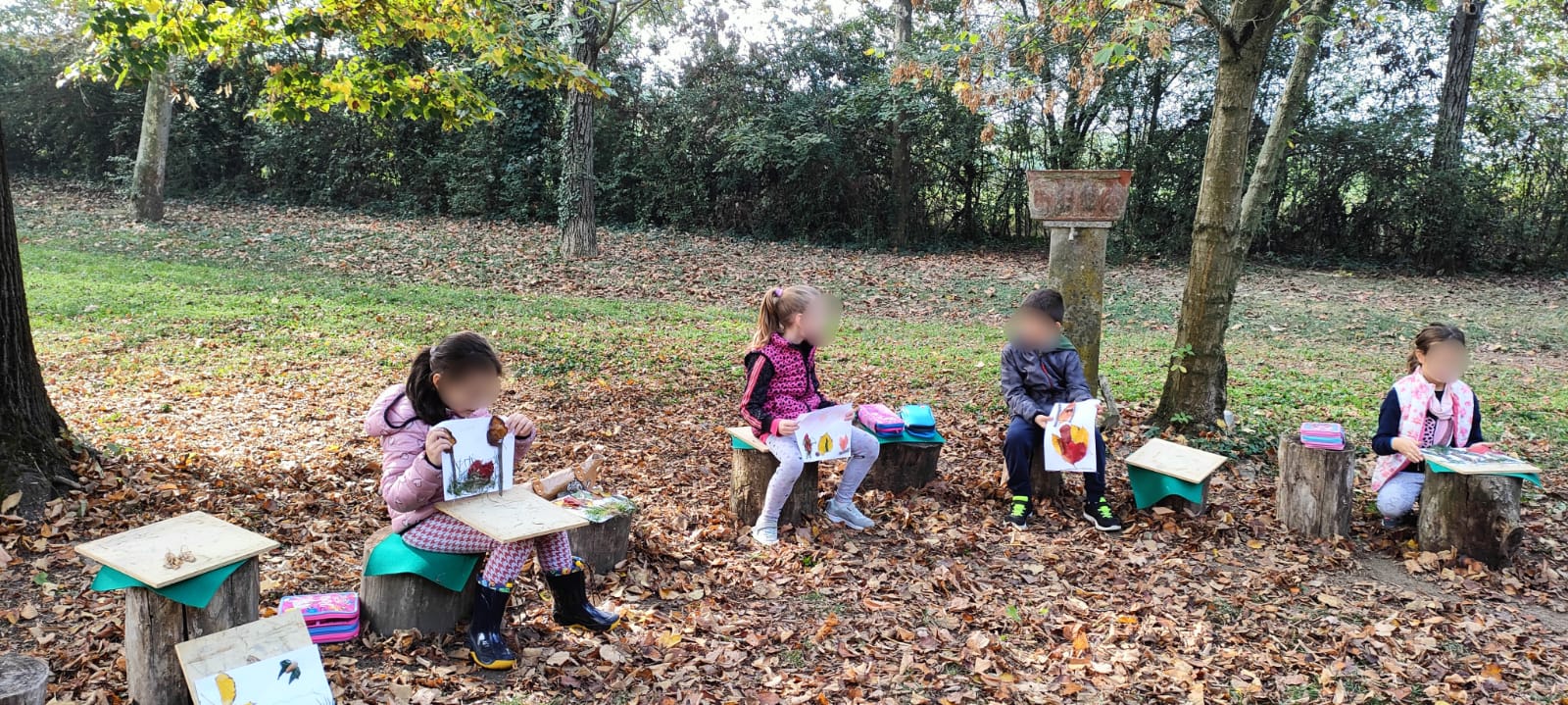 Ispirandosi alle foglie, alle loro forme, ai loro colori, ai rametti e alle cortecce, la fantasia dei bambini ha creato nuovi temi e paesaggi.