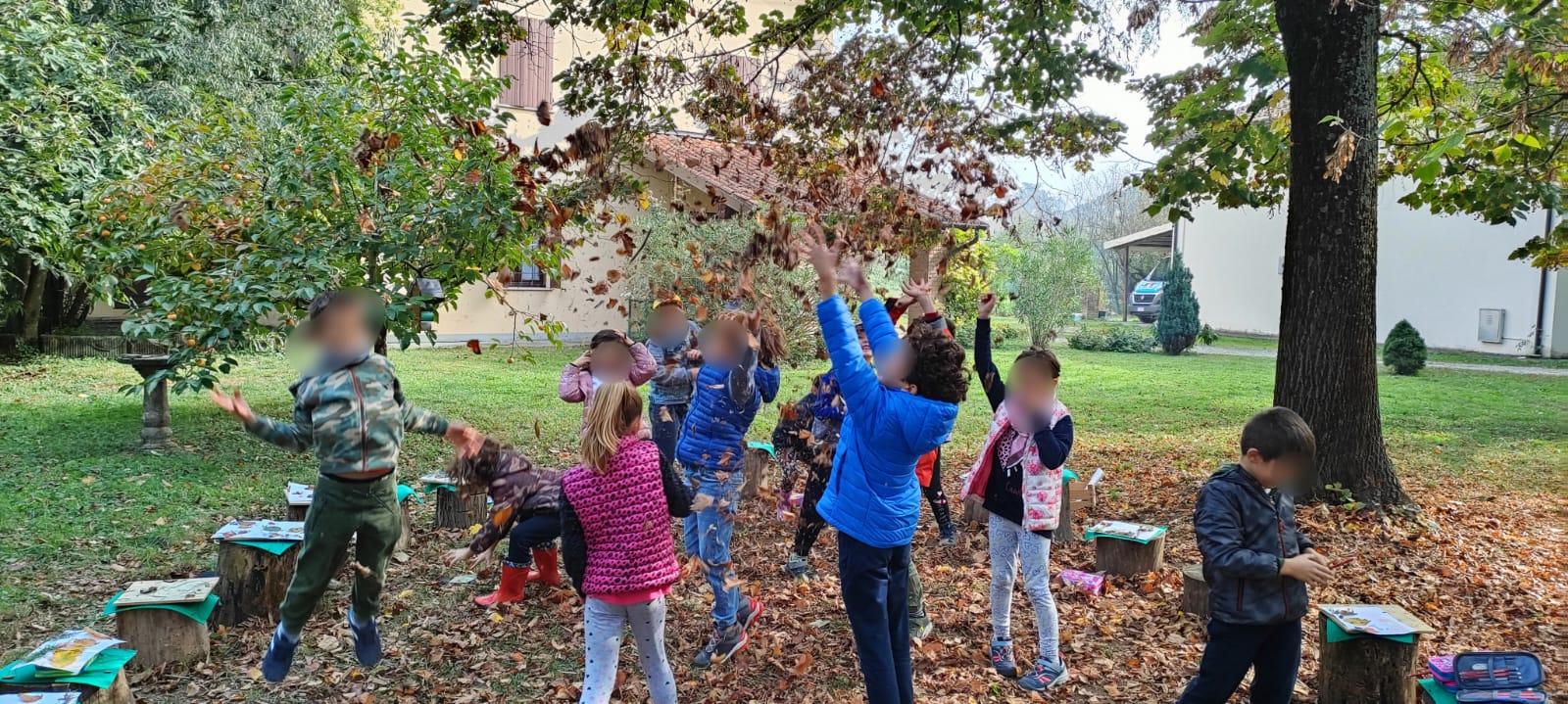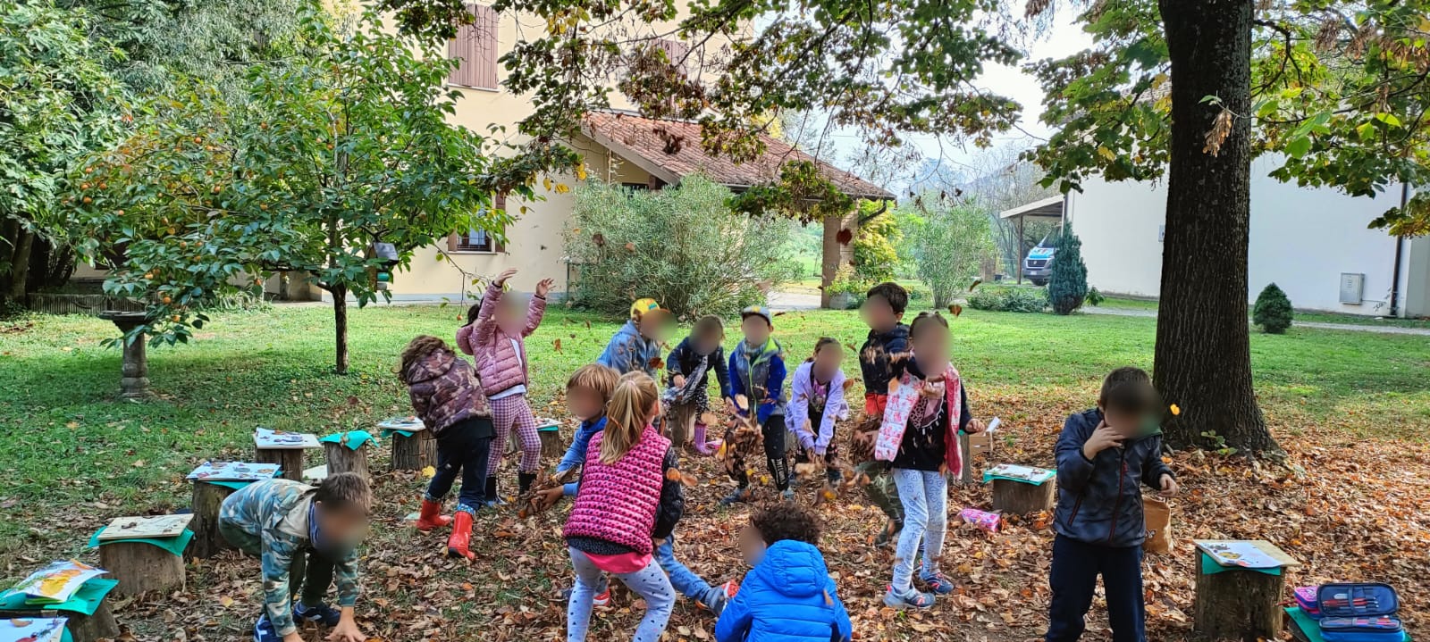 Alla fine si sono divertiti col gioco di lanciare in aria le foglie autunnali cadute creando una pioggia di colori suoni e profumi.