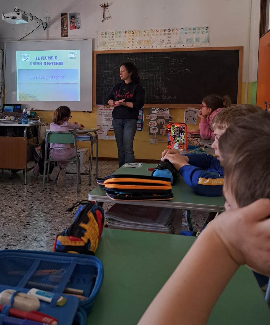 La classe seconda dell'Istituto Sant'Orsola di Guastalla ha iniziato il percorso sulla storia antica del nostro fiume Po parlando in aula dei mestieri che il fiume offriva agli abitanti del proprio territorio: ad esempio il barcaiolo, il pontiere, il pescatore e il palombaro.