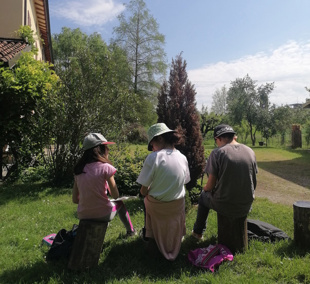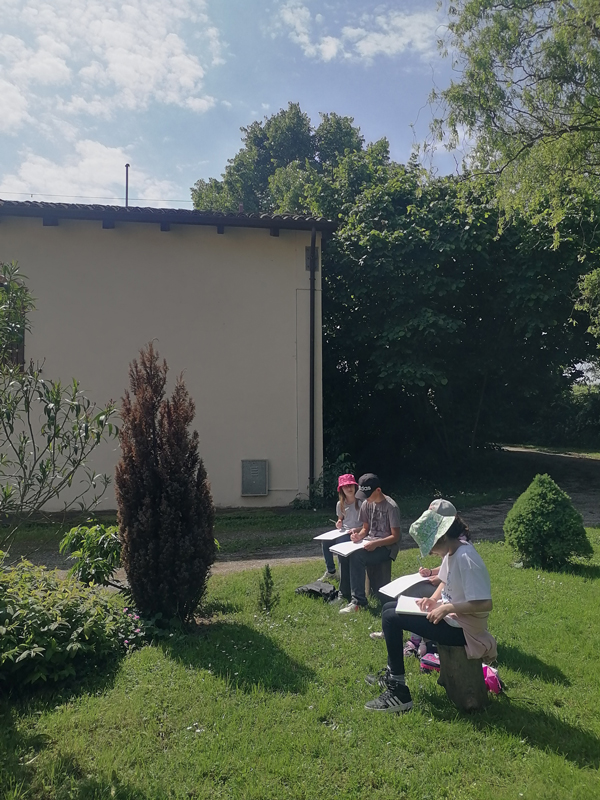 I ragazzi della Classe 5 elementare di Guastalla al centro di educazione ambientale Mario Lodi per il progetto "dalla natura alla pittura".