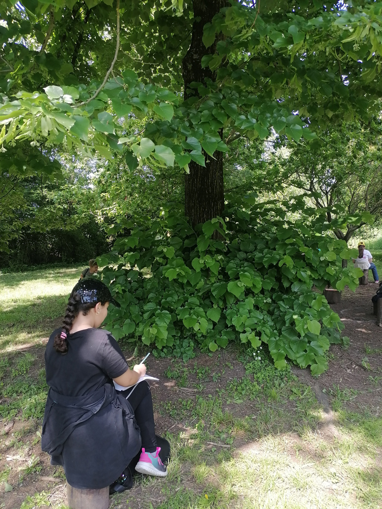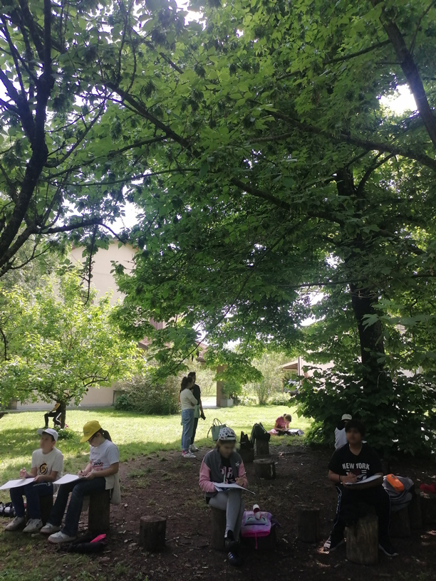 Hanno scelto uno o più particolari del nostro giardino, li hanno disegnati con un'osservazione dal vivo e hanno poi colorato utilizzando i colori e i materiali naturali.
