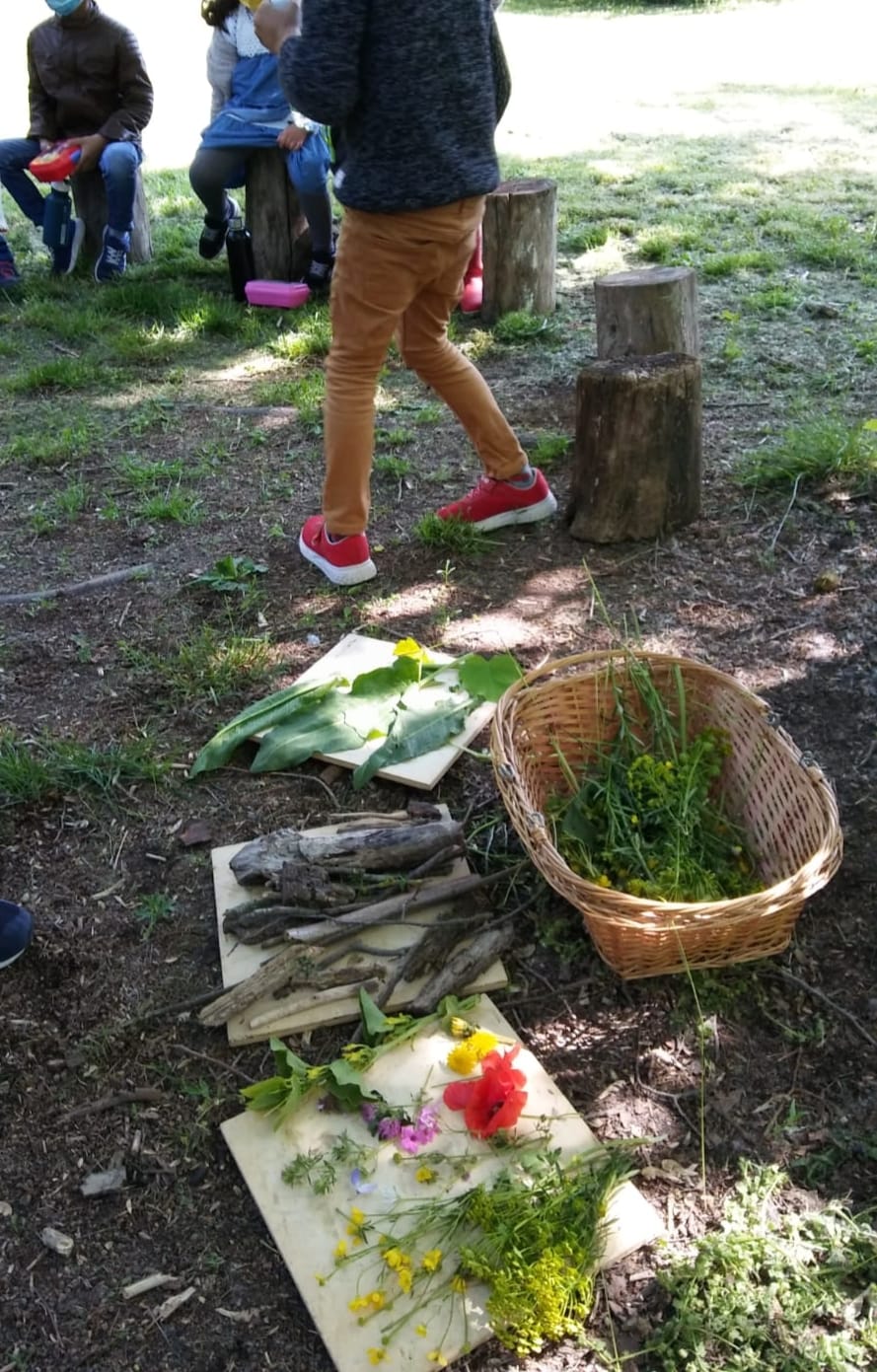 Per l'occasione i bimbi hanno assunto il ruolo di cameriere posizionando briciole per i fortunati clienti... per continuare poi l'esperienza in campo con la raccolta di materiale per approfondire la conoscenza della natura attaverso i sensi.