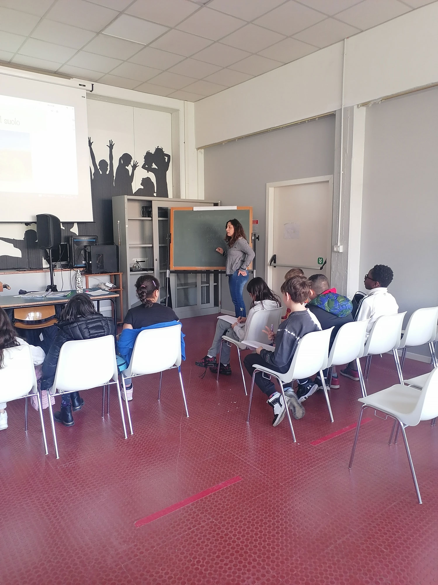 Lezione in aula per i ragazzi della Scuola secondaria di primo grado dell'Istituto Comprensivo di Gualtieri e Boretto - classi Prime (A,B, C) di Gualtieri.